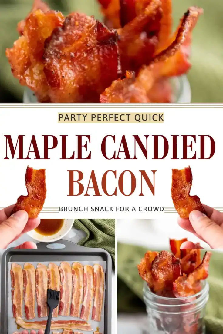 Crispy bacon strips coated in a sweet maple and brown sugar glaze, with a hint of pepper for balance. Baked until caramelized and golden.