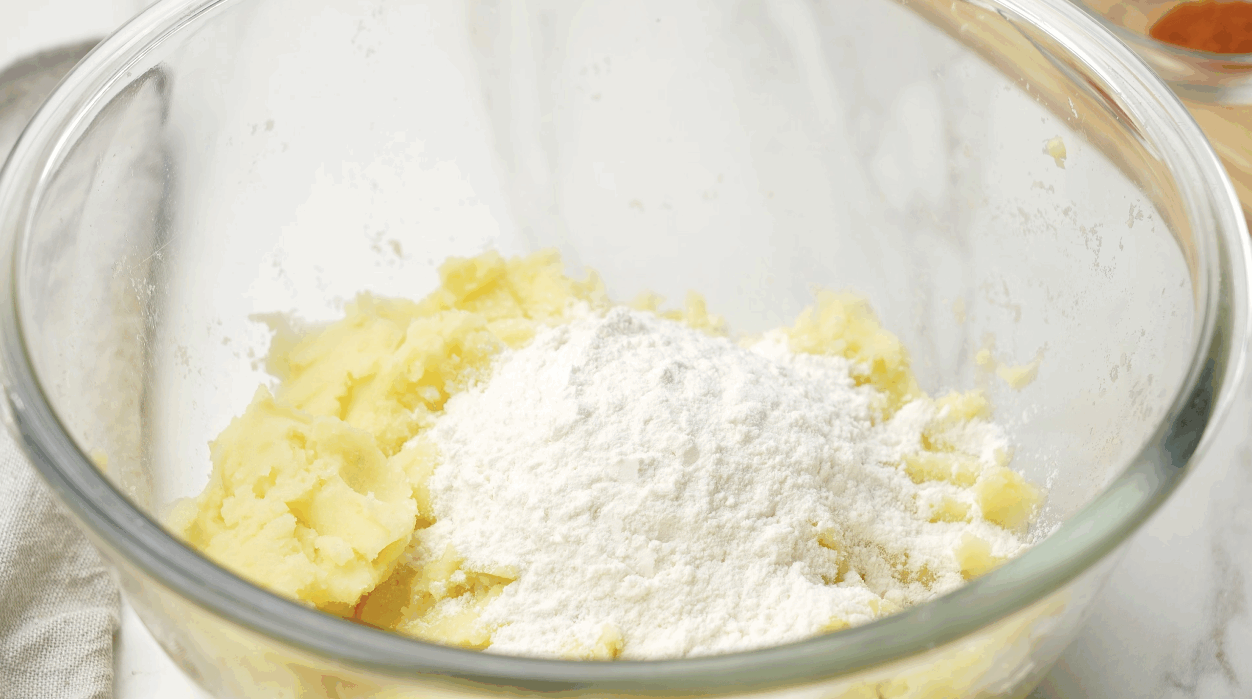 - Take a small amount of the potato mixture and flatten it in your palm.
