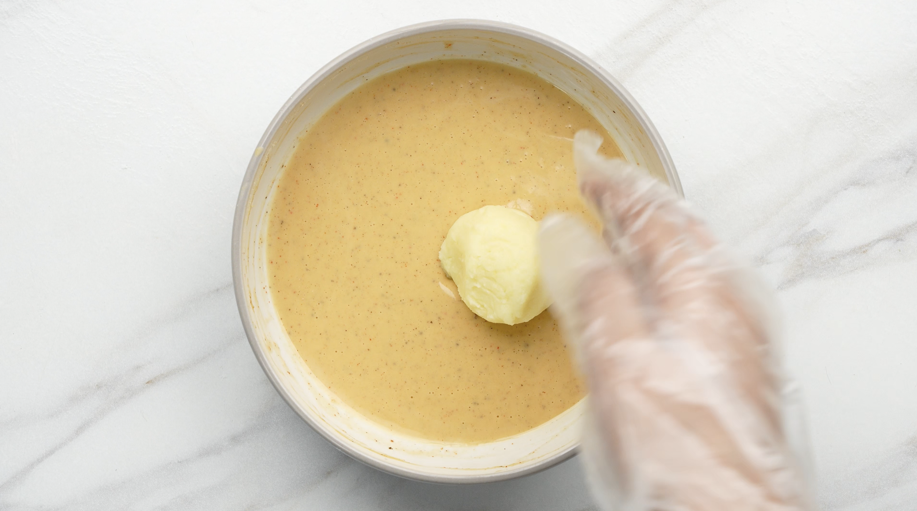 Dip each potato ball into the egg mixture, making sure it is well coated.