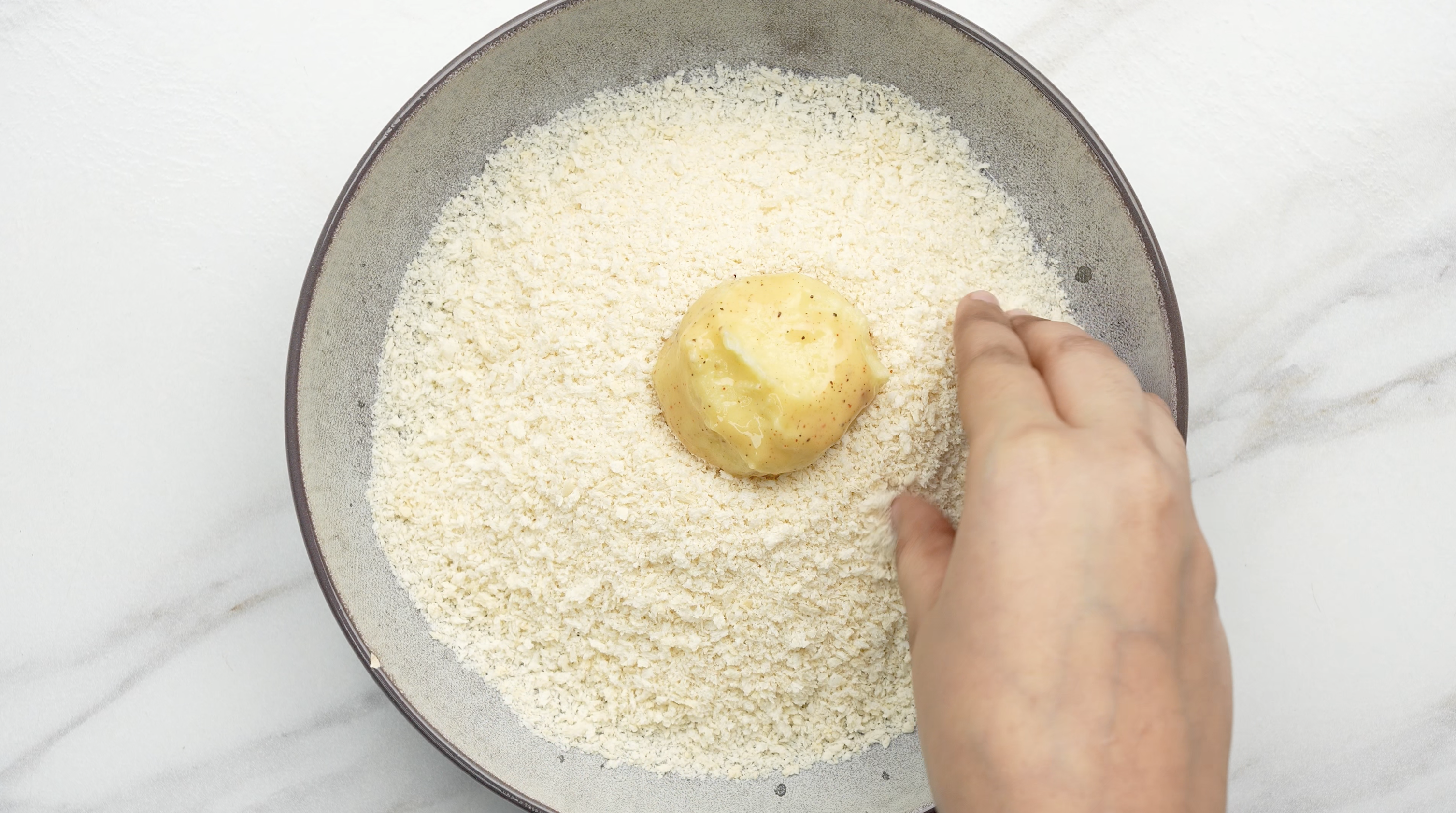- Roll it in the bread crumbs until completely covered.