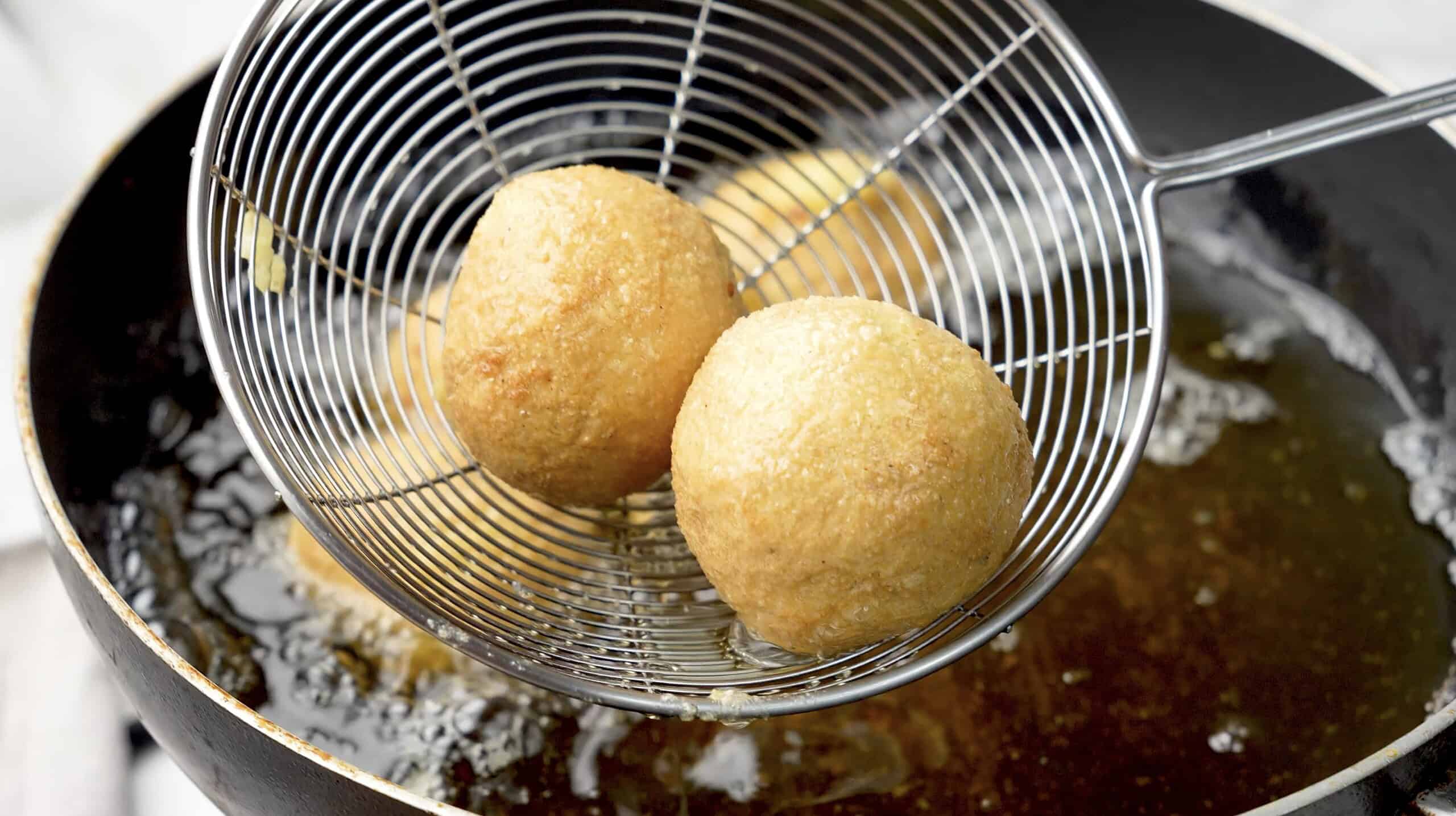 - Heat the oil in a deep pot or fryer to 350ยฐF (175ยฐC). Fry the croquettes in batches for 2-3 minutes, or until golden and crispy.
