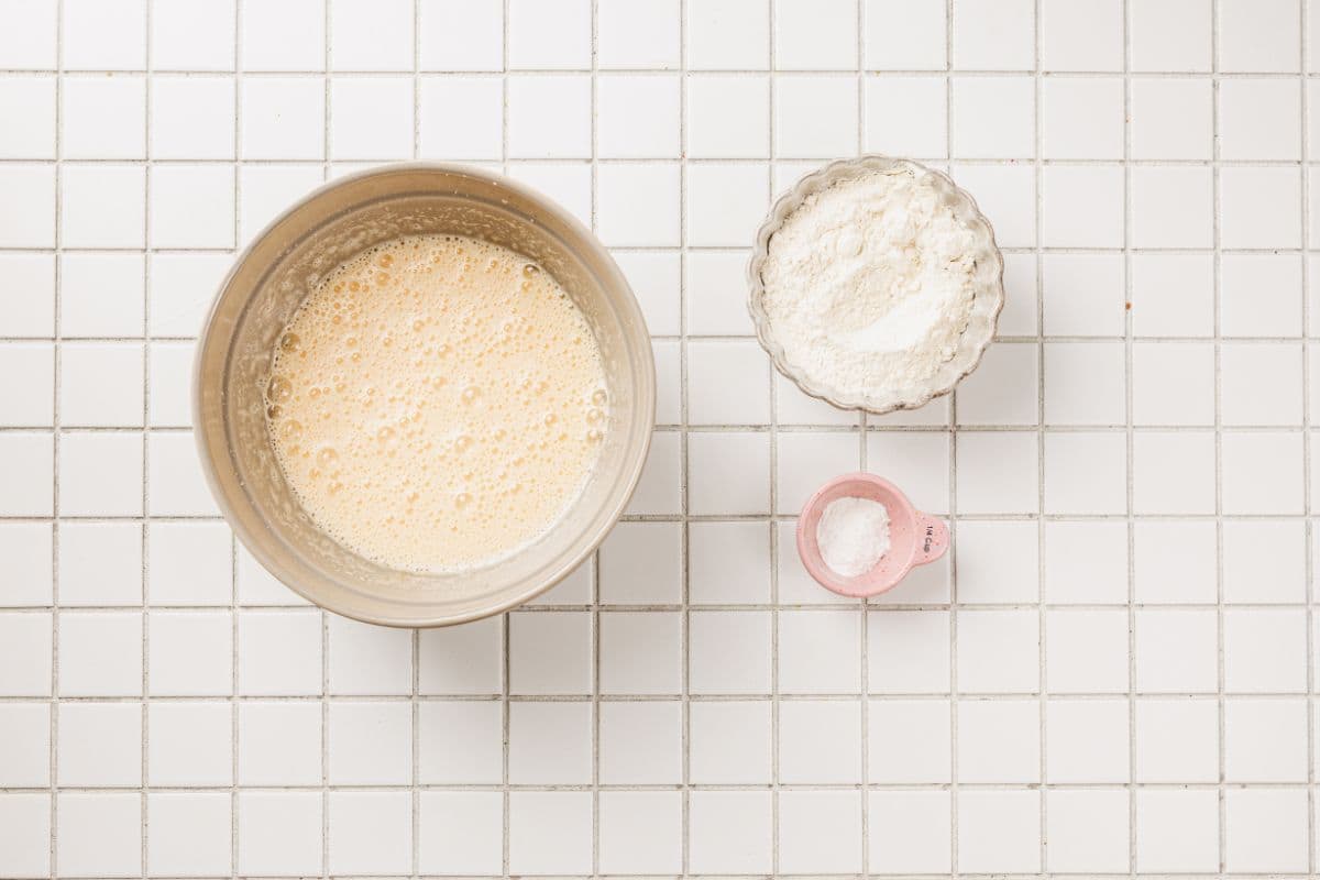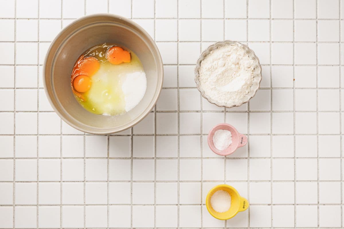 - Preheat the oven to 350ยฐF (180ยฐC). Line the bottom of a 9.5-10 inch (24-25 cm) springform pan with parchment paper and lightly grease the sides with sunflower oil. In a large mixing bowl, beat eggs with granulated sugar, vanilla sugar, and a pinch of salt on high speed until pale, airy, and tripled in volume.